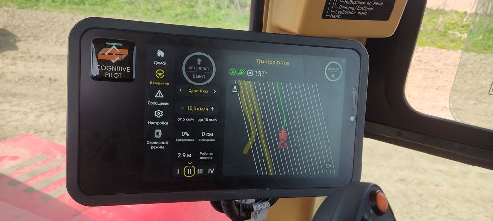 Впервые в России создана собственная система автовождения по сигналам спутниковых глобальных навигационных систем (ГНСС). При этом, в отличие от зарубежных аналогов, Агро-Пилот использует не только координаты со спутников ГЛОНАСС и GPS, но и дополнительно обрабатывает видеопоток с камер системы машинного зрения.