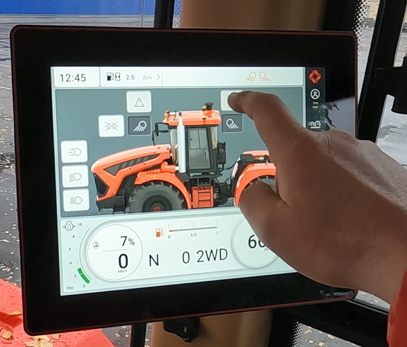 Перейдем ко второму элементу: дисплей – это сенсорная панель для удобного зрительного восприятия параметров работы трактора, а также для управления этими параметрами.