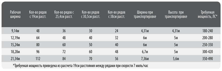 Большой выбор размеров,рабочей ширины вплоть до 21.3м и способность точно высевать при скорости до 12 км/час дает возможность сеялке 525 проходить больше акров за час, чем любому другому посевному оборудованию.
