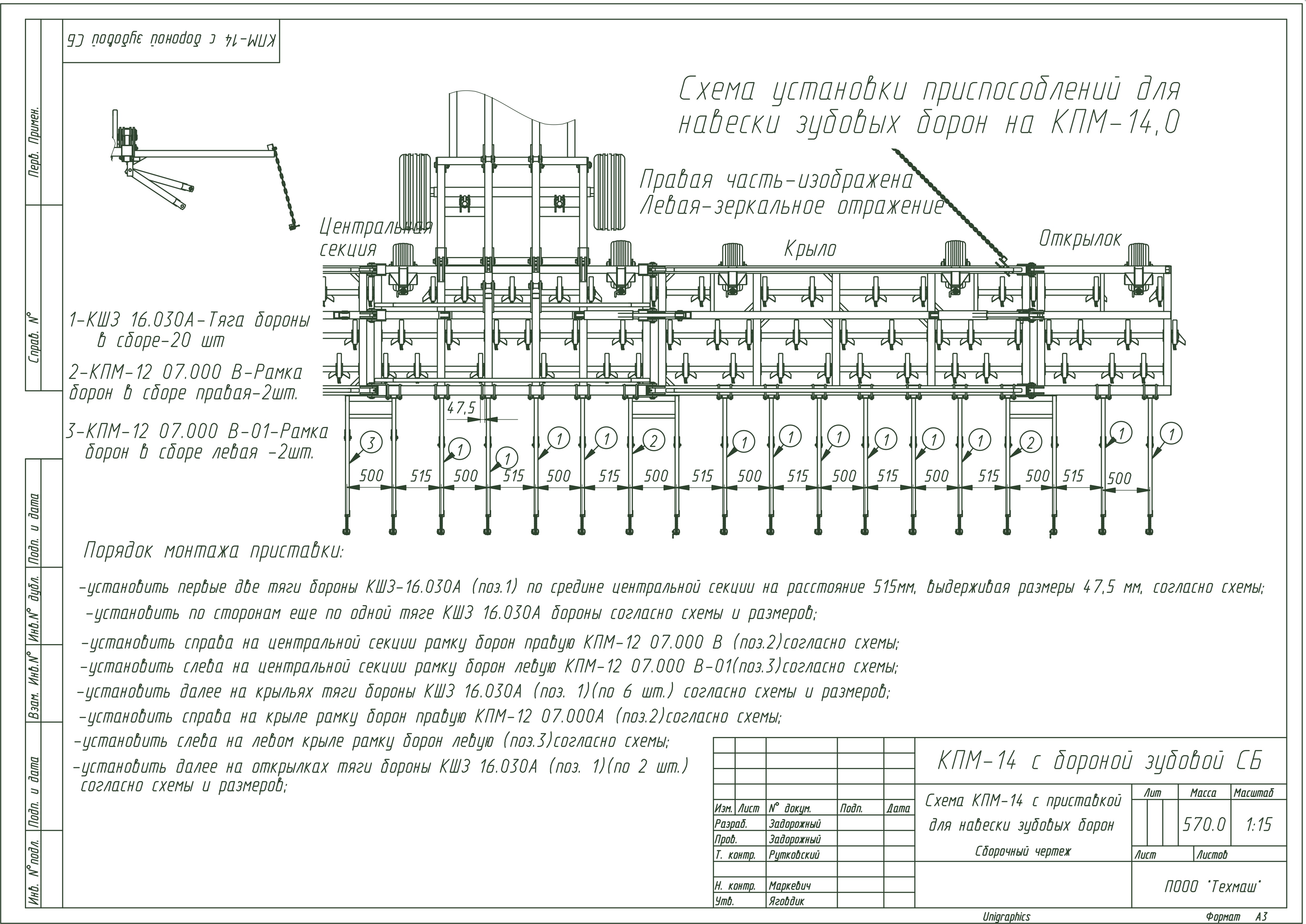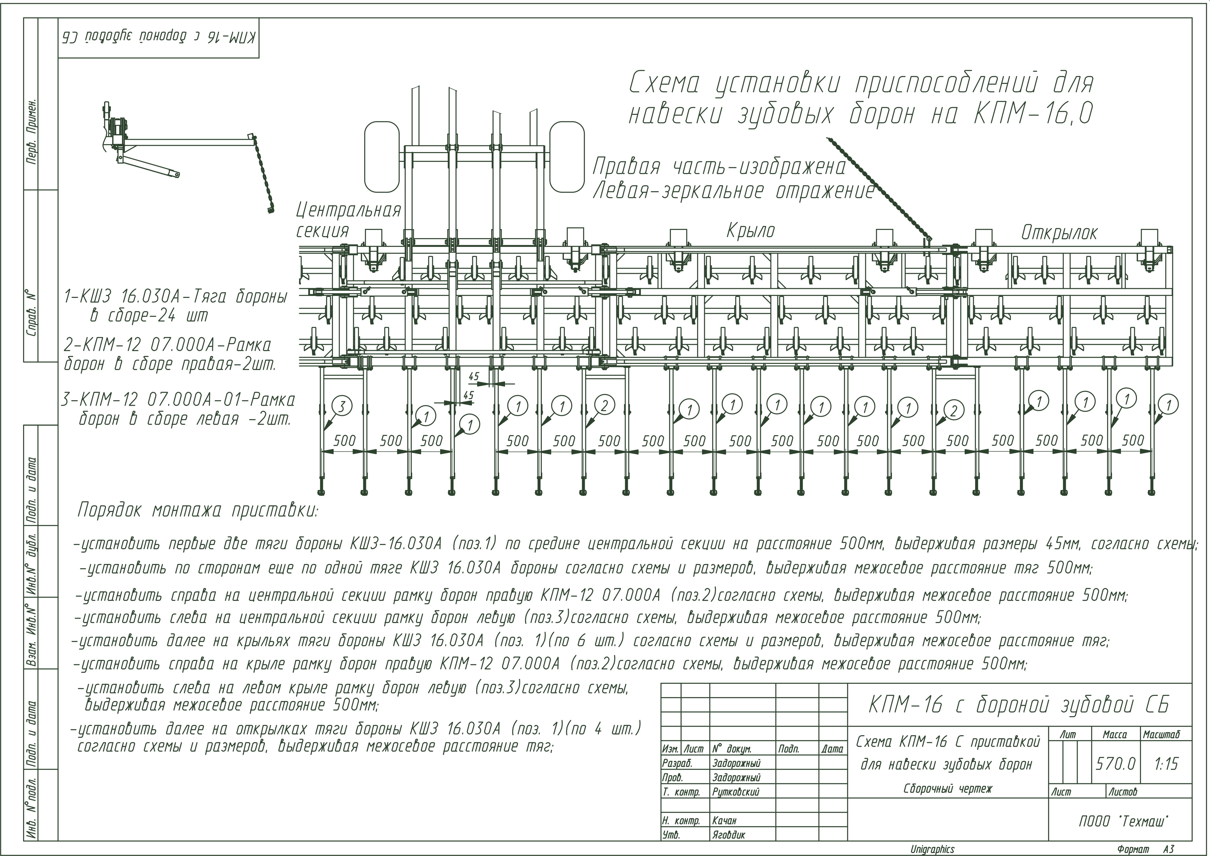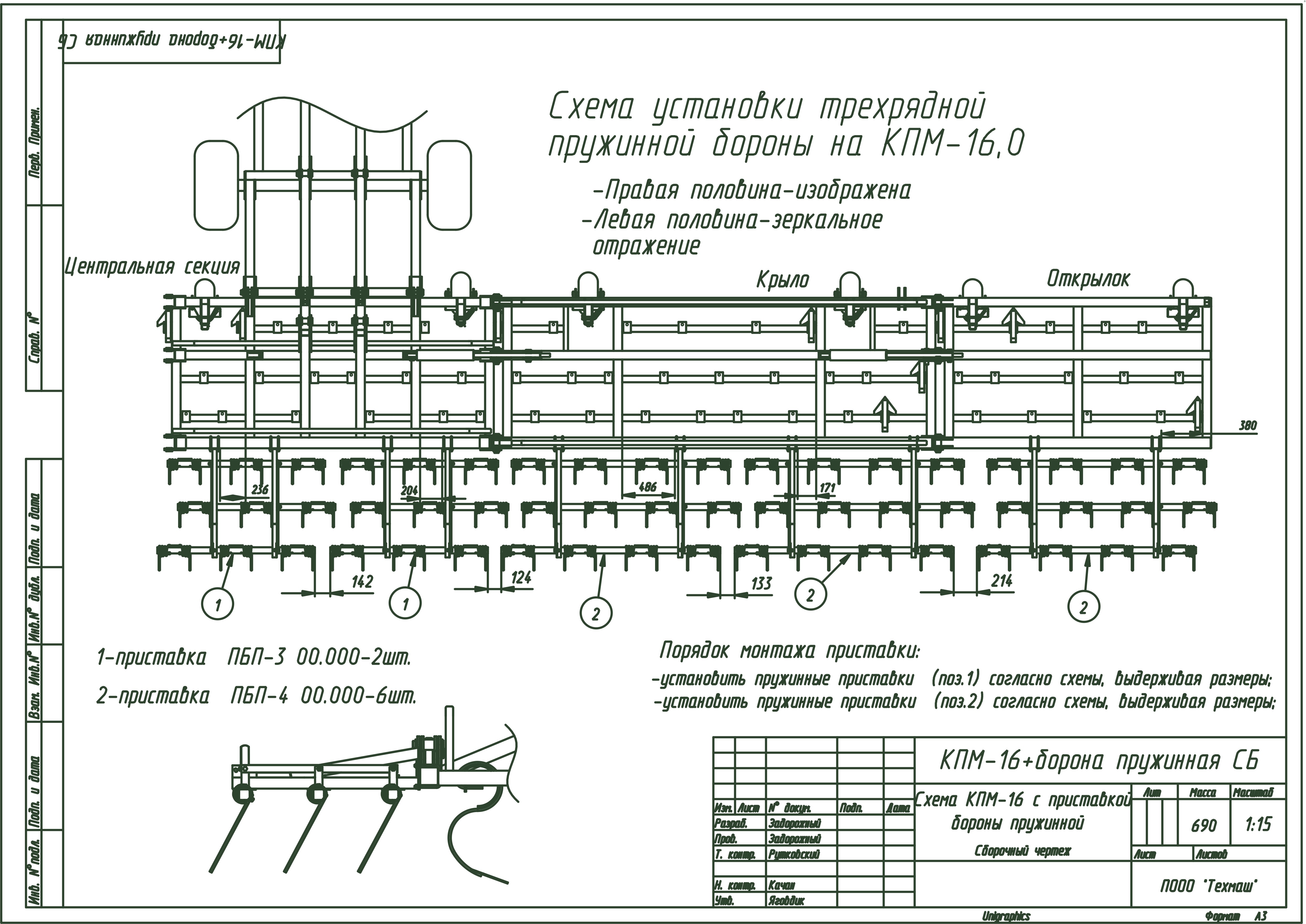 2. Приспособление для навески зубовых борон.