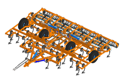 У данного агрегата 4 ряда рабочих органов. Комплектуется стойками размером 70х12 итальянского производства с подпружинниками с лапами шириной 280 мм. Расстановка стоек позволяет исключить забивание растительными остатками. Ширина лап и расстановка стоек обеспечивает перекрытие на менее чем 50 мм.