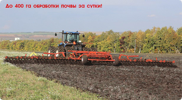 - Отличное орудие для крупных предприятий, агрофирм с отдаленными филиалами и агросервисных компаний. Позволяет за один-два дня произвести обработку самых больших площадей и осуществить переезд на другой объект или поле.