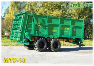 Машина МТУ-18 предназначена для транспортировки и сплошного поверхностного внесения твердых органических удобрений, а при снятом разбрасывающем органе - для перевозки других сельскохозяйственных грузов с разгрузкой конвейером назад.