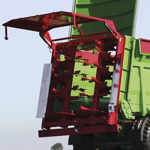 УДОБРЕНИЕ – ВЕРТИКАЛЬНЫЙ 4–ВАЛЬЦОВЫЙ АДАПТЕР Разбрасыватели, оснащены наклоненным вперед 4-вальцовым вертикальным адаптером, гарантируют равномерное распределение навоза на ширину от 6 до 8 м. Вертикальный адаптер имеет заменяемые прикрученные зубья, которые изготовлены из высококачественной стали.