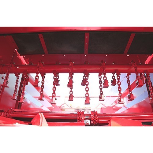 ЦЕПОВОЙ ТРАНСПОРТЕР Разбрасыватели TYTAN оснащаются транспортером, состоящим из четырех цепей. Звенья цепи изготовляются из высококачественной стали диаметром 14 мм. Вместе со специальными сгребающими планками машины приспособлены для работы при больших нагрузках. Большой диаметр торцовых колец позволяет уменьшить снашивание цепи.