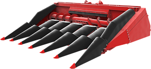 В состав комплекта КОК входит понижающий редуктор оборотов молотильного барабана, который дополнительно поставляется по заказам потребителей. Жатки для уборки кукурузы оптимальным образом совмещают в себе функциональность, легкость и прочность, обеспечивая отличную бесперебойную работу при уборке в самых трудных условиях. Низкий профиль машины позволяет работать на очень близком к почве уровне воздействия на стебель, улучшая, таким образом, сбор полегшей кукурузы и значительно уменьшая потери. Жатка объединяет в себе преимущества щадящего сбора початков и эффективного измельчения стеблей.